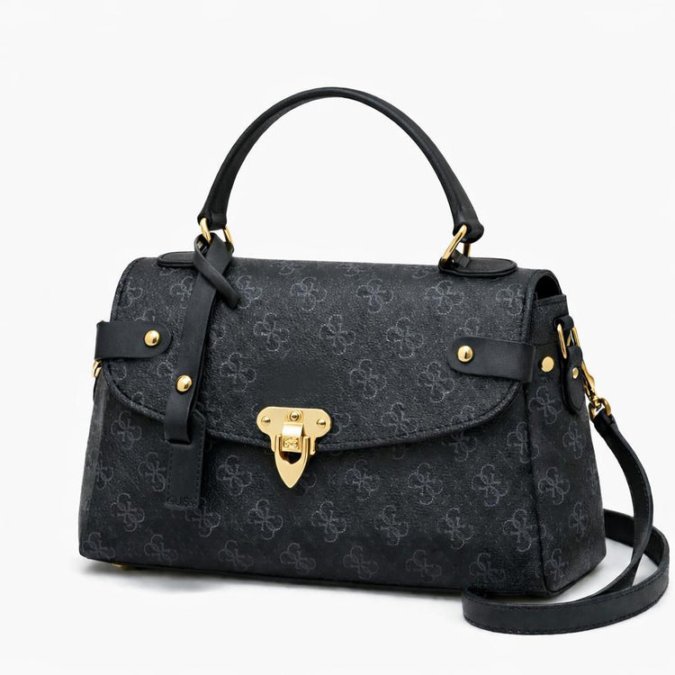 Zerva Queen Kadın Siyah Desenli El & Omuz Çantası- Şık Kilitli Günlük Çanta