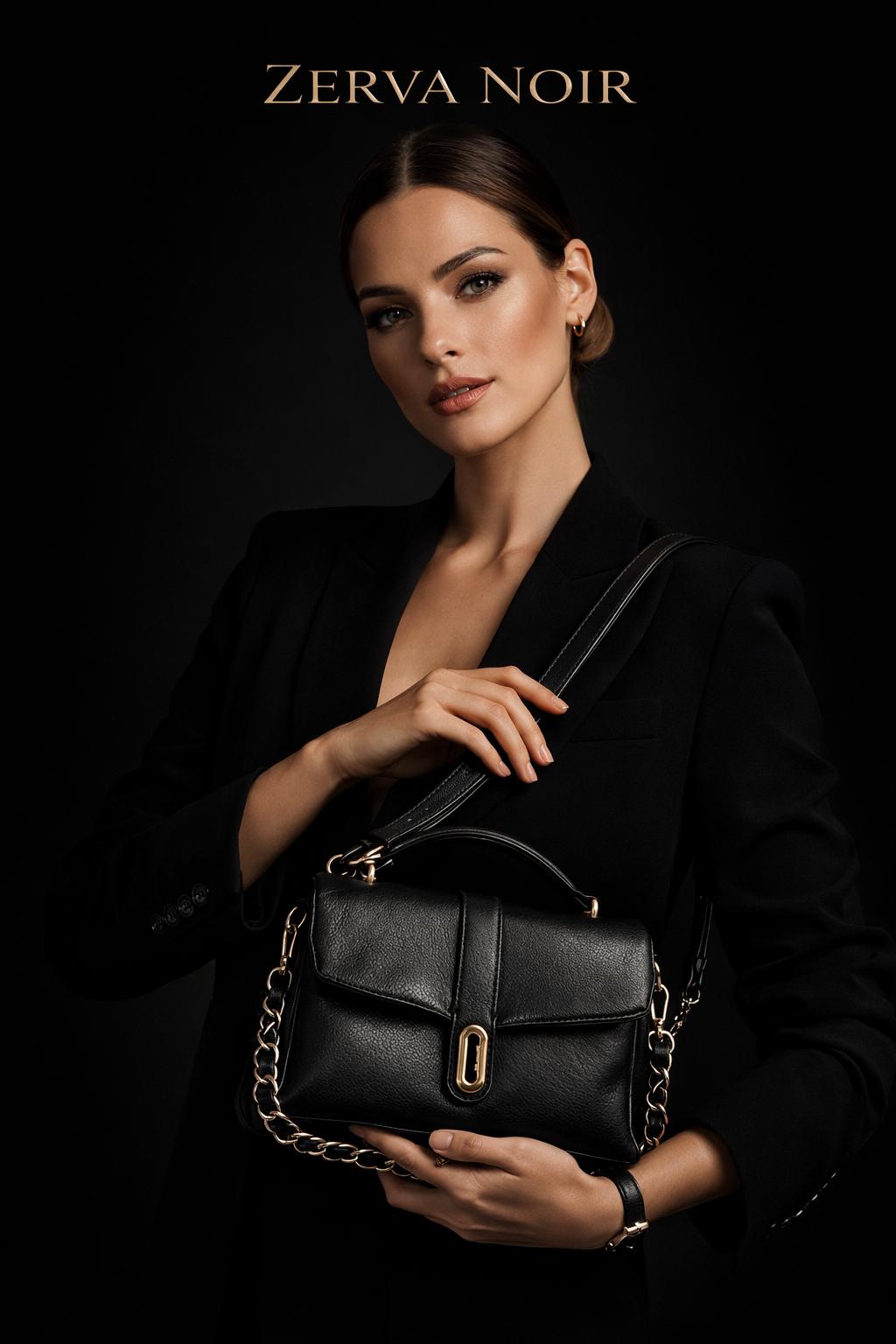 Zerva Noir Siyah Zincir Detaylı Kadın Omuz ve El Çantası